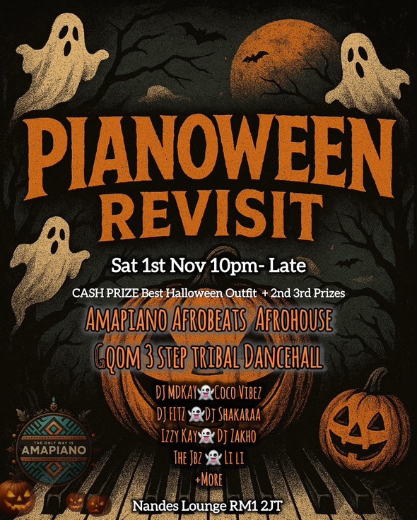 LONDONS PREMIERE AMAPINAO HALLOWEEN EXPIRIENCE ! Join The Only Way Is Amapiano at Nandes, Romford RM1 2JT for Fancy Dress thriller 9pm-3am...